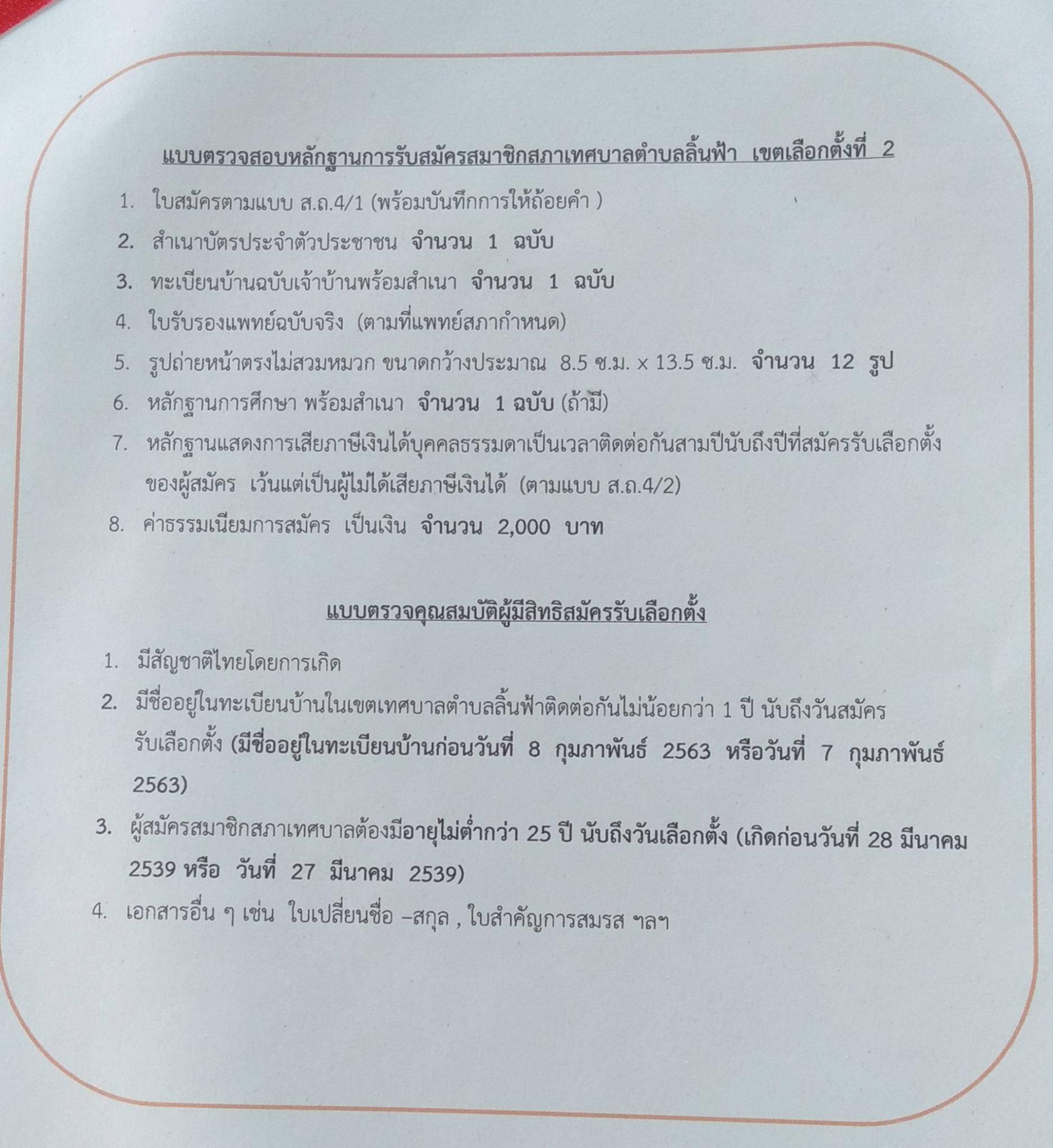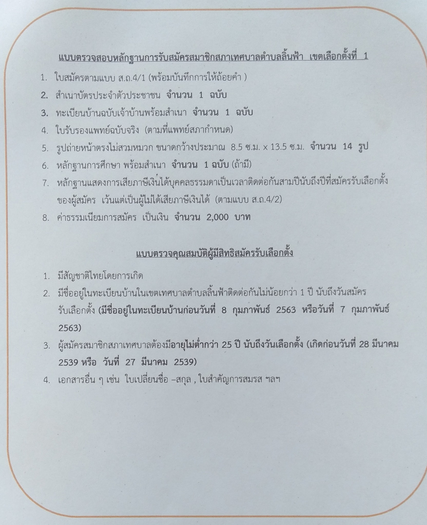 รายละเอียด : รับสมัครรับเลือกตั้งเทศบาลตำบลลิ้นฟ้า