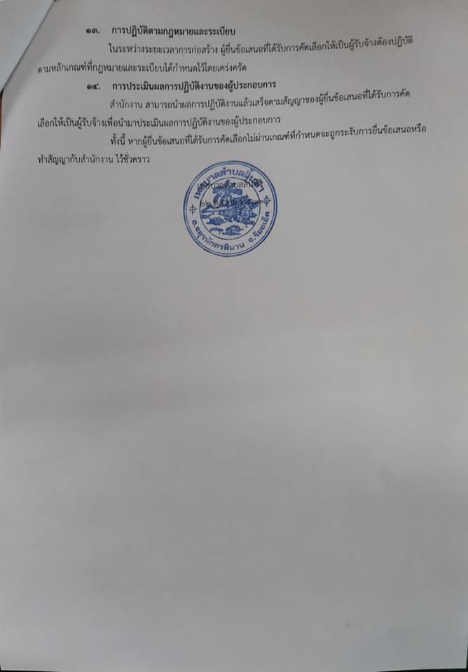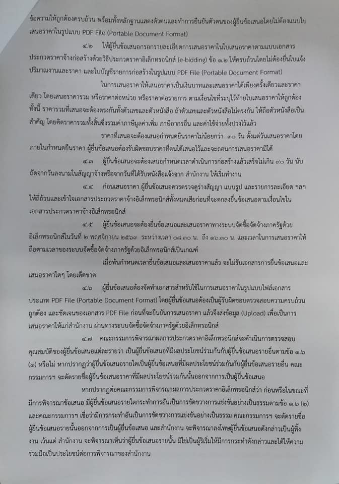 เอกสารประกวดราคาจ้างก่อสร้างด้วยการประกวดราคาอิเล็กทรอนิกส์ ( e-bidding ) เลขที่ 01/2564 การจ้างก่อสร้างก่อสร้างถนนคอนกรีตเสริมเหล็กสายบ้านหวายหมู่ที่ 4 ถึงบ้านป่าดวนหมู่ที่ 6 ตำบลลิ้นฟ้ากว้าง 4 เมตรยาว 730 เมตร หนา 0.15 เมตรเทศบาลตำบลลิ้นฟ้าอำเภอจตุรพักตรพิมานจังหวัดร้อยเอ็ด 1 สายทาง ตามประกาศเทศบาลตำบลลิ้นฟ้า ลงวันที่ 22 ตุลาคม 2563