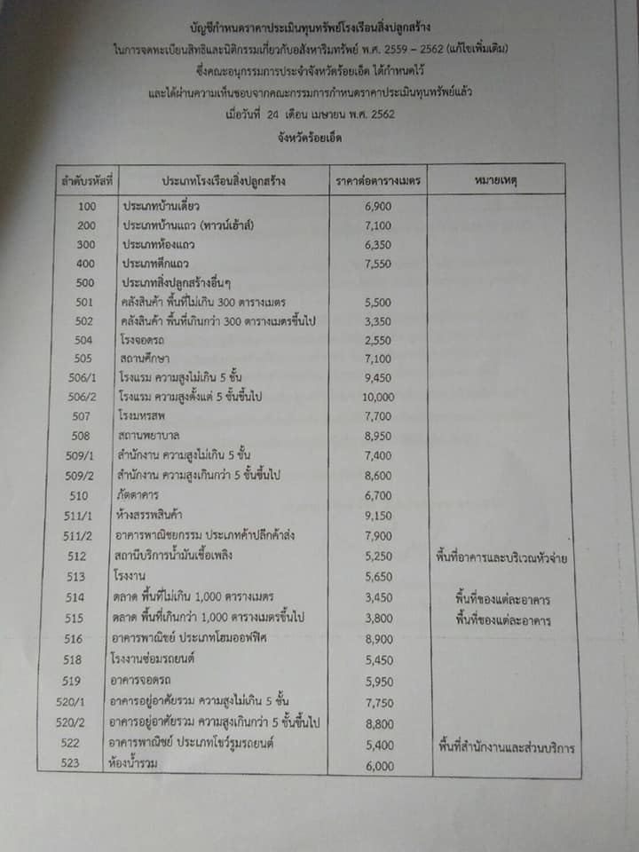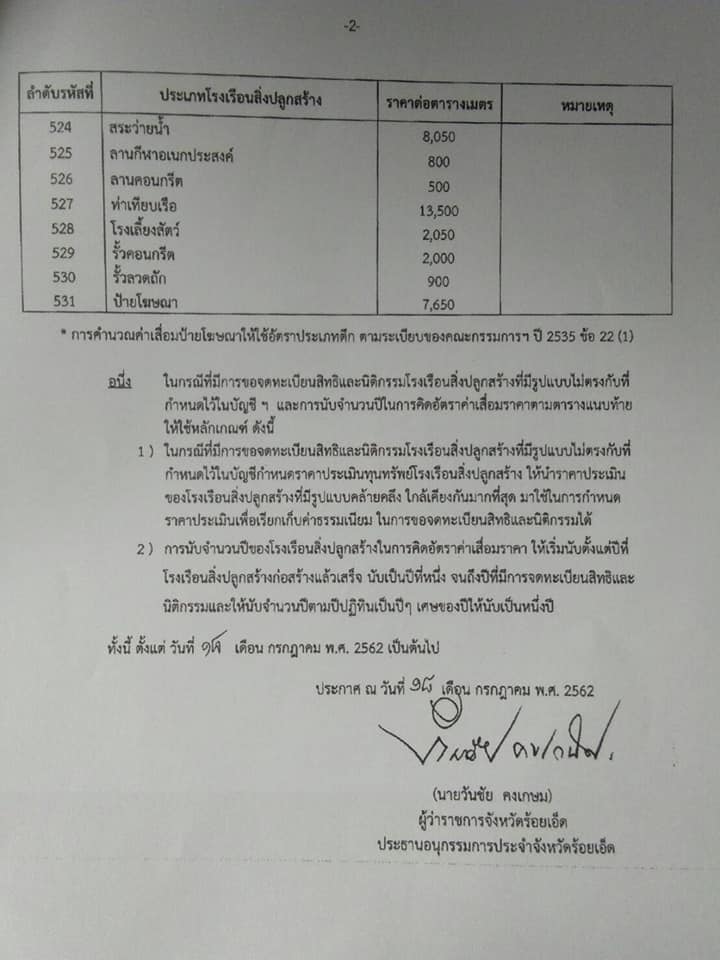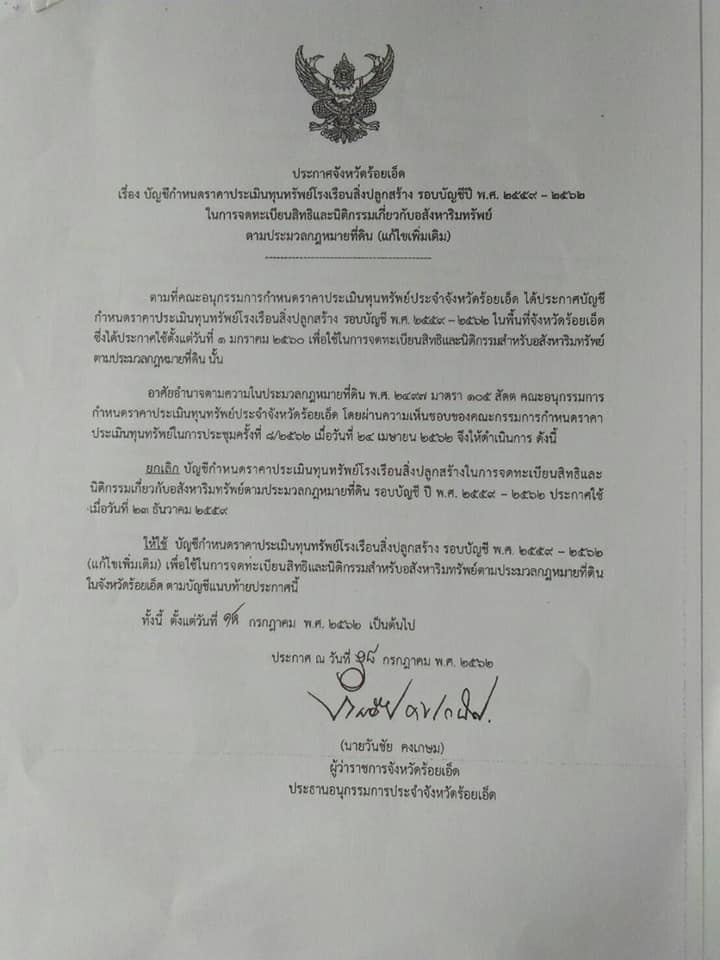 ประกาศบัญชีรายการที่ดินและสิ่งปลูกสร้าง ประจำปี2563