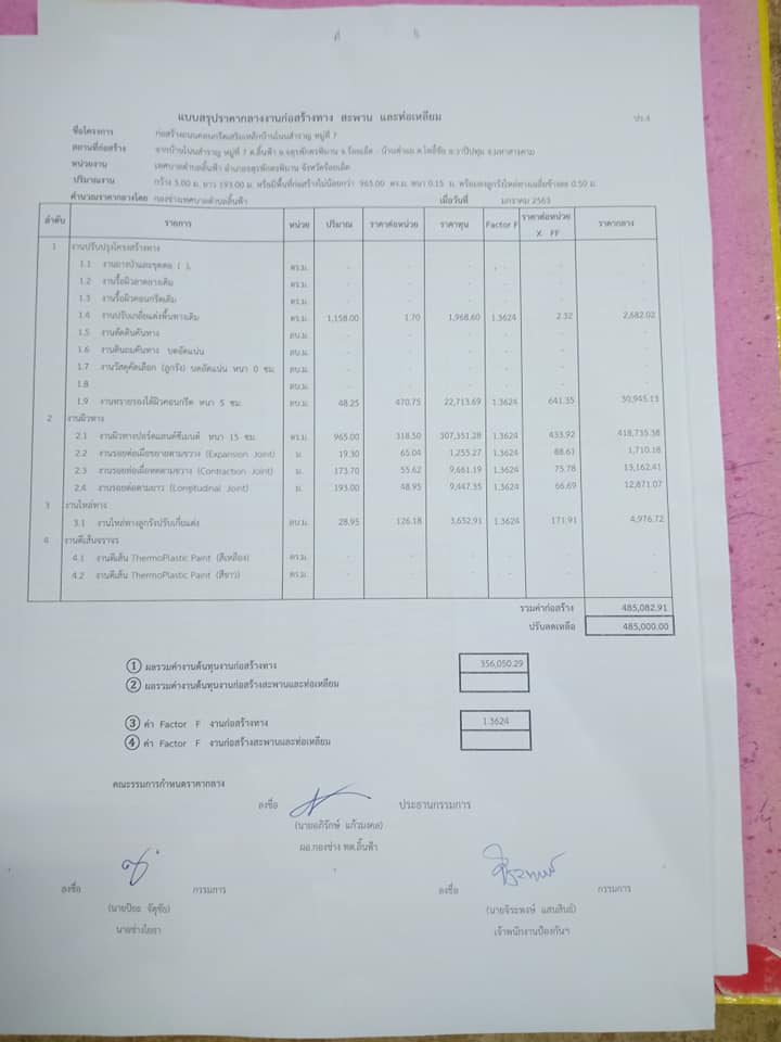 ราคากลาง โครงการก่อสร้างถนน คลส. ม.7 บ้านโนนสำราญ