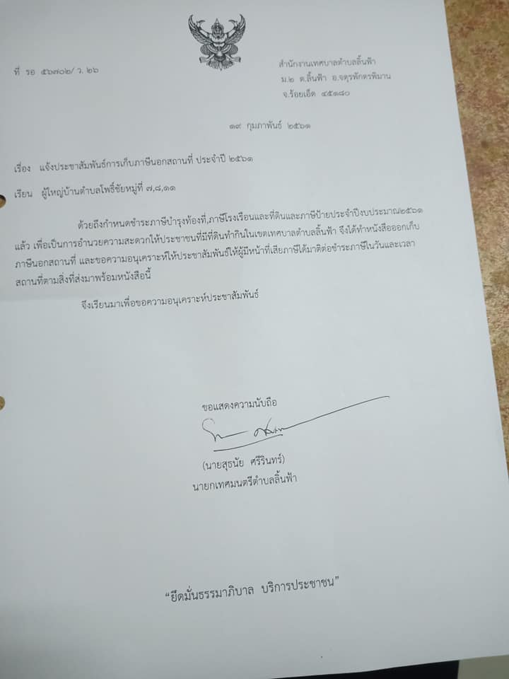 ประชาสัมพันธ์เก็บภาษีประจำปี 2562