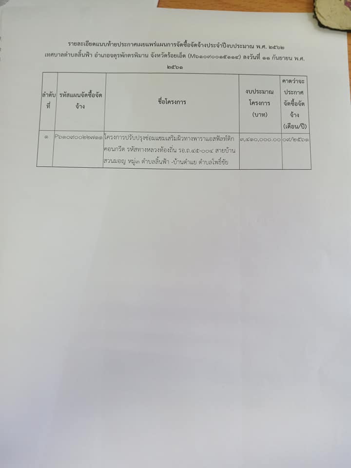 ประกาศ เผยแพร่การจัดซื้อจัดจ้าง ปี62