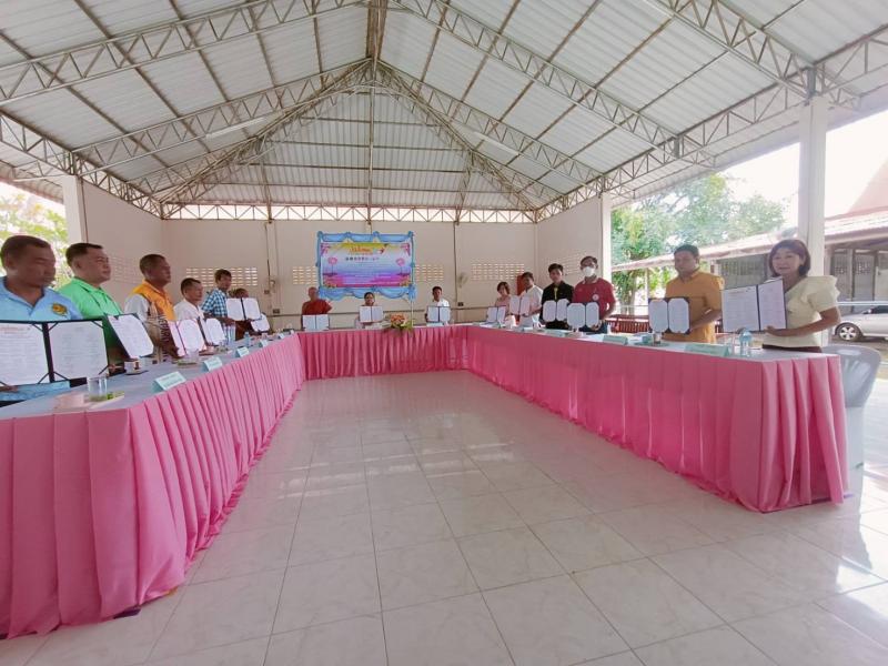 รายละเอียด : วันที่ 19 กรกฎาคม 2566 เทศบาลตำบลลิ้นฟ้าร่วมกับภาคีเครือข่าย ประกอบด้วย ท้องถิ่นอำเภอจตุรพักตรพิมาน ผู้นำชุมชน โรงเรียนในเขตพื้นที่ตำบลลิ้นฟ้า และ รพ.สต.บ้านลิ้นฟ้า ร่วมกันลงนามบันทึกข้อตกลง (MOU) ว่าด้วยความร่วมมือโครงการ วัด ประชา รัฐ สร้างสุข ในการพัฒนาวัด ตามแนวทาง 5ส. ณ วัดพิพิธมาลี บ้านป่าดวนหมู่ที่ 6 ตำบลลิ้นฟ้า อำเภอจตุรพักตรพิมาน จังหวัดร้อยเอ็ด โดยมี ร.ต.ต.หญิงอรุณี อินทรมณี นายอำเภอจตุรพักตรพิมาน เป็นประธานในการลงนาม MOU ร่วมกัน