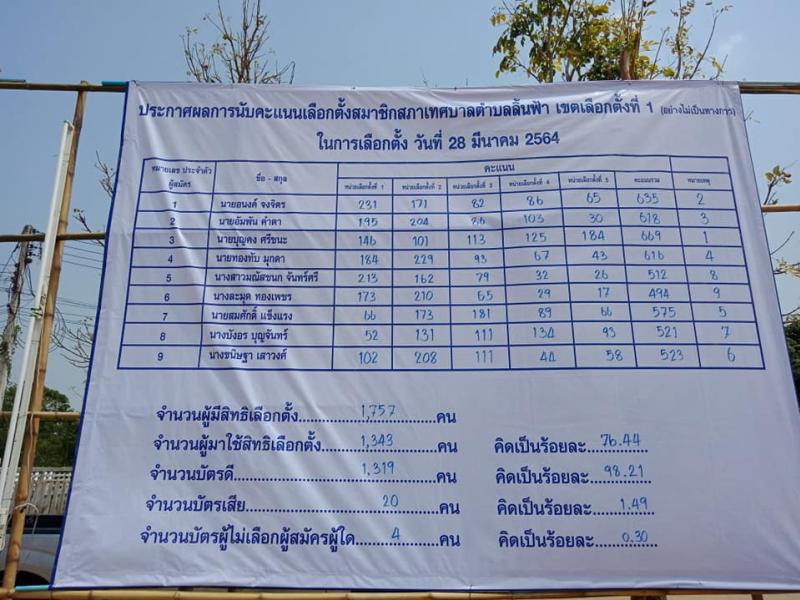 การนับคะแนนเลือกตั้งสมาชิกเทศบาลและนายกเทศมนตรีเทศบาลตำบลลิ้นฟ้า(อย่างไม่เป็นทางการ) 28/3/2564 (3 ภาพ)